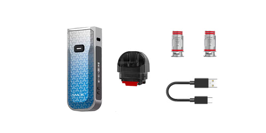 The Smok Nord 5 Pod System is an 80 watt vape device that uses an internal 2000 mAh rechargeable battery. The mod is constructed out of a zinc alloy chassis, comes in a Dart or Leather version, and uses a refillable pod that has a 5.0 mL e-liquid capacity. Users can also adjust airflow via the sliding lever, and it features a 0.69 inch OLED screen for displaying vaping parameters. The pod also features a sliding lock system which helps prevent leaking and securely holds the press-fitted coil in place.