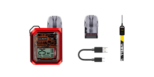 The Uwell Caliburn GK3 pod system is a sleek and fully capable vape designed for enthusiasts seeking a seamless blend of performance and convenience. Powered by a 900 mAh battery, the GK3's larger battery helps extend vaping sessions and is compatible with the Caliburn G3 pods. With a maximum output power of 25W, this refillable pod system features the Caliburn Flavor 3.0 Pro-Focs technology for enhanced flavor density, restoration, and accuracy. Users also have the option of a loose or tighter airflow based on the orientation of the pod. Stay in control with the segmented digital LCD screen that provides at-a-glance visibility of your battery life, wattage settings, puff count, and resistance while offering a uniquely distinctive retro feel. The GK3 is type-c rechargeable and offers 2.5ml e-juice capacity to ensure a seamless, reliable experience. Upgrade your vaping journey with the Caliburn GK3 — where flavor, precision, and convenience meet.