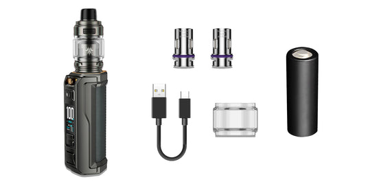 Discover the Voopoo Argus XT Starter Kit, which includes the Voopoo Argus XT box mod and the Uforce-L tank. It boasts a stylish and durable design fit to withstand day-to-day vaping. Powered by an external 18650 or 21700 battery and the GENE.TT 2.0 chip, the mod has a maximum power output of 100 watts and multiple vaping modes that can cater to your every need. The device is equipped with a QS lock and is IP68 water-resistant, shock-resistant, and dust-resistant rating that allows it to stand up to a multitude of circumstances. The Uforce-L tank features a 6.5 mL vape juice capacity, unique volcano crater and leak-resistant top airflow, and is compatible with the TPP coils. With its sleek design and beautiful leather accents, this vape kit is built to be the perfect companion for anytime and anywhere.